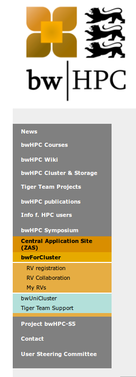 The starting point for the registration of a RV at the ZAS is https://zas.bwhpc.de/en/zas_info_bwforcluster.php.