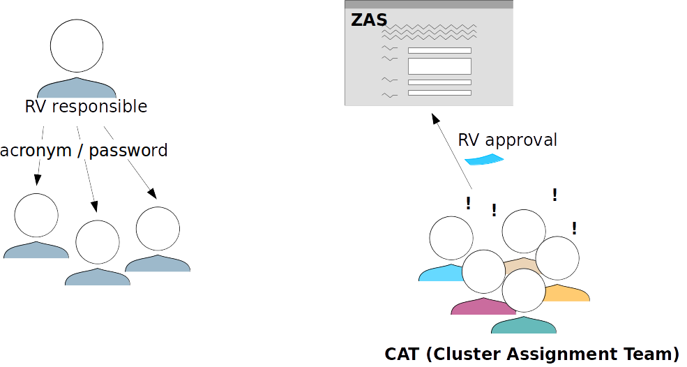 Then, the RV responsible gets his acronym and a password, and the Cluster Assignment Team (CAT) discusses the RV: